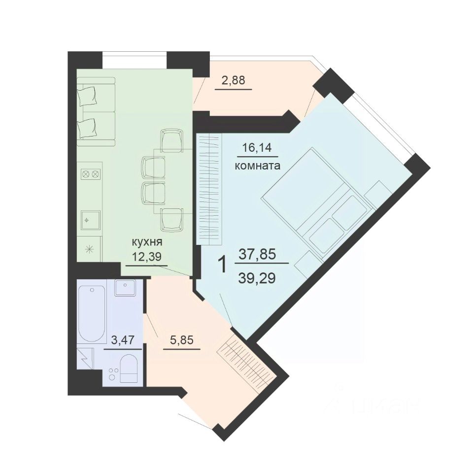 Общая площадь39,29 м²