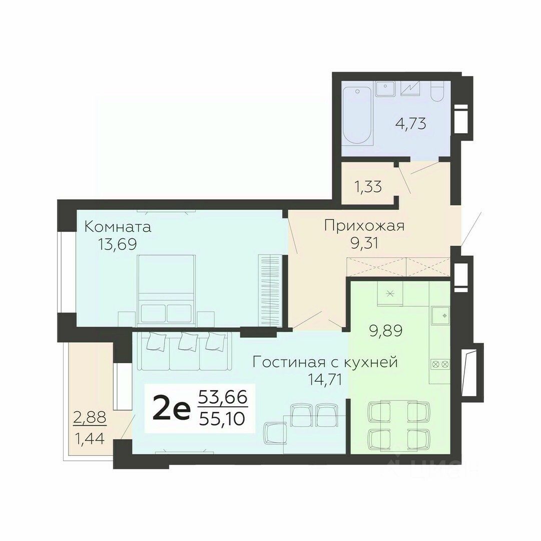 Общая площадь55,1 м²