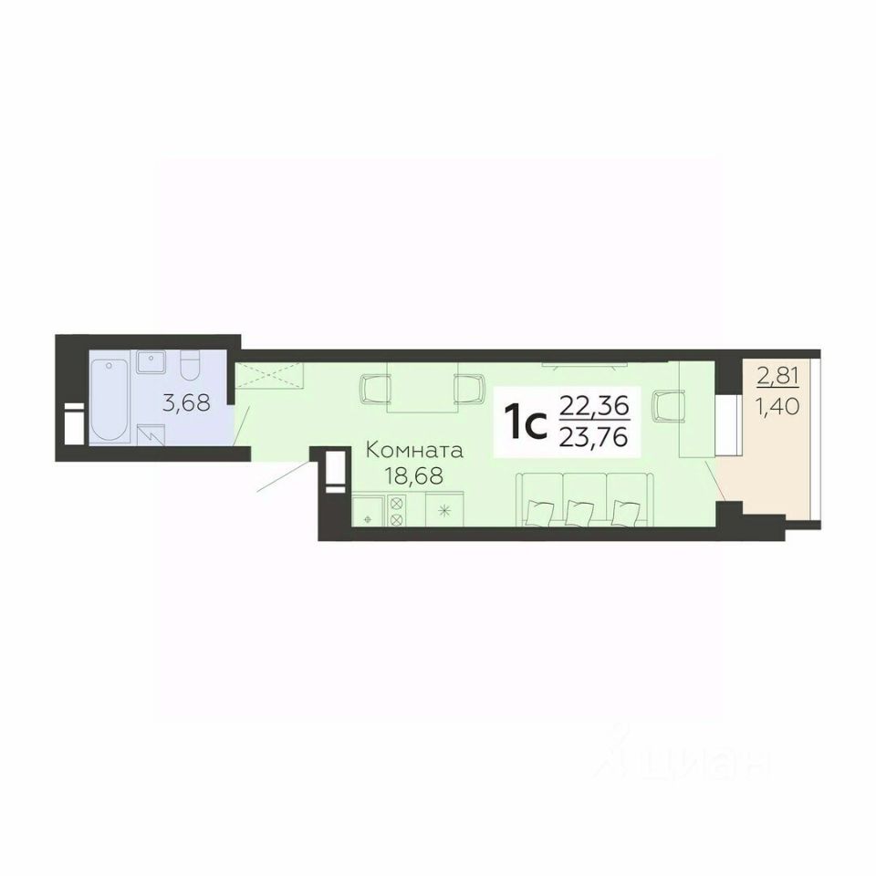 Общая площадь23,76 м²