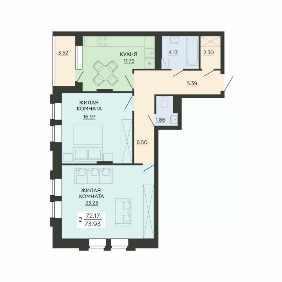 Общая площадь73,93 м²