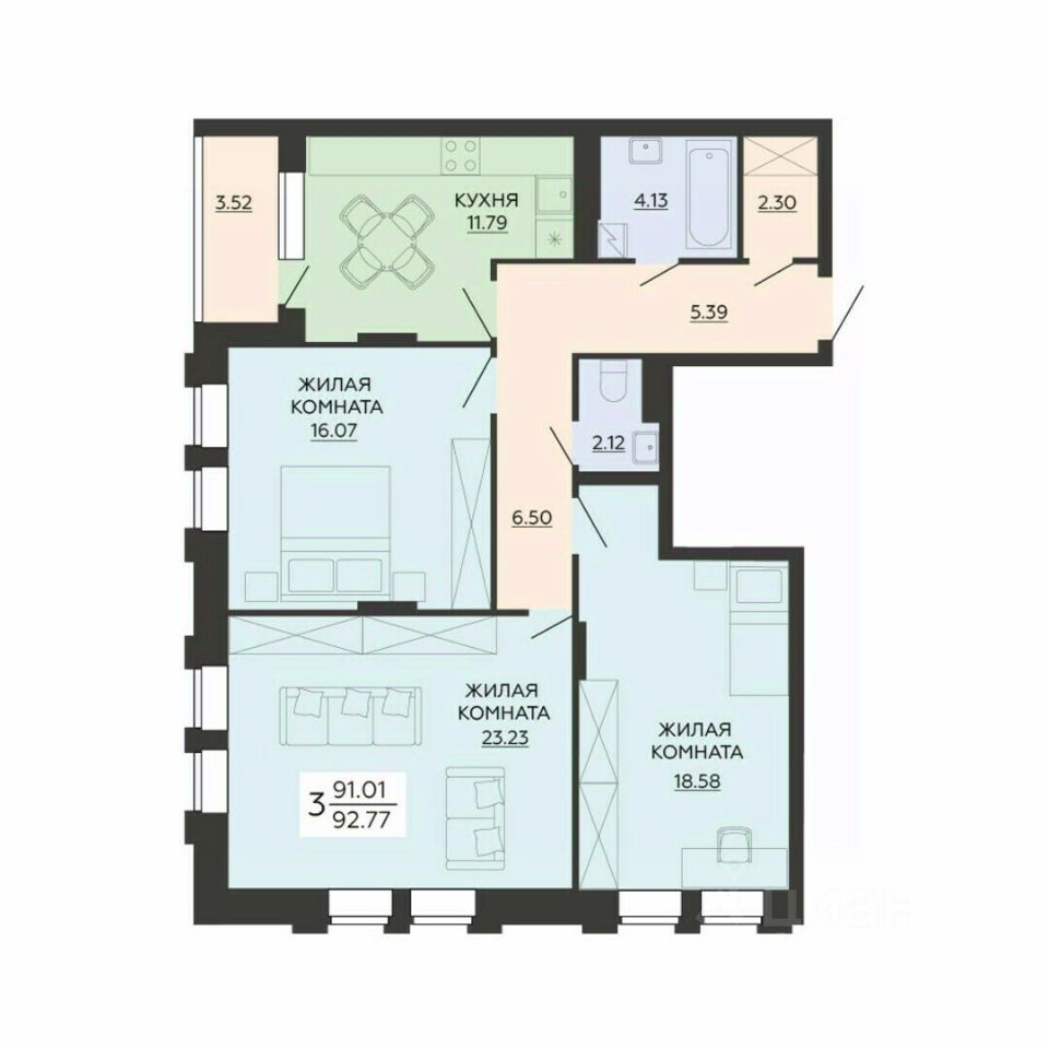 Общая площадь92,77 м²