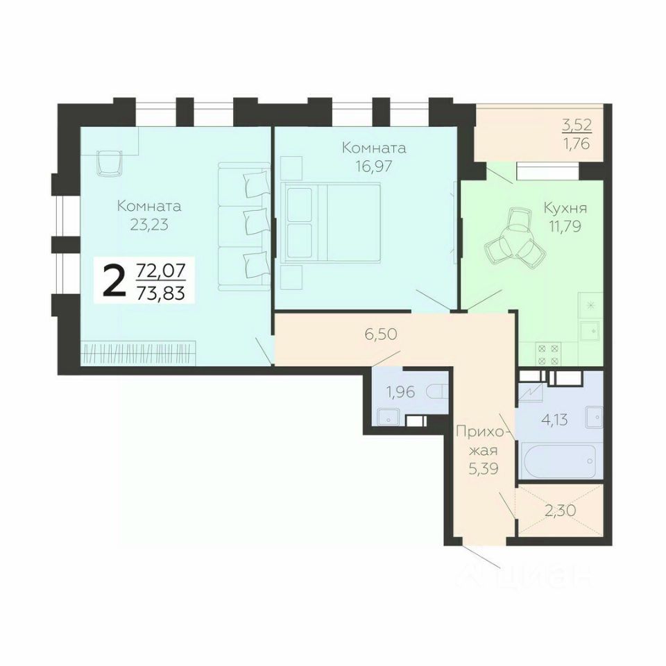 Общая площадь73,83 м²