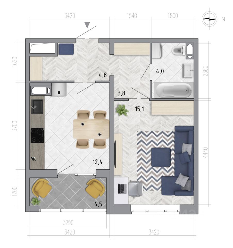 Большая кухня, Пространство под гардероб в прихожей, Лоджия из кухни, Просторный санузел.