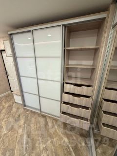 Мебель: качественная кровать с матрасом, шкаф-стенка, индивидуально изготовленная большая гардеробная, стол и стулья.