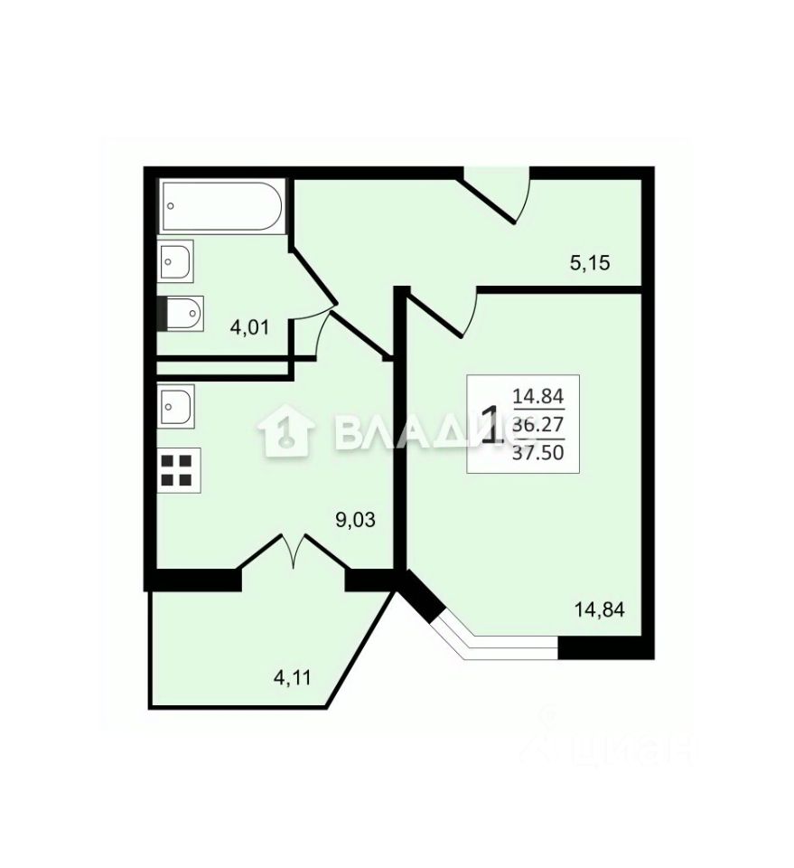 - Общая площадь: 36,1 кв. м