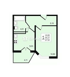 - Жилая площадь: 14,8 кв. м