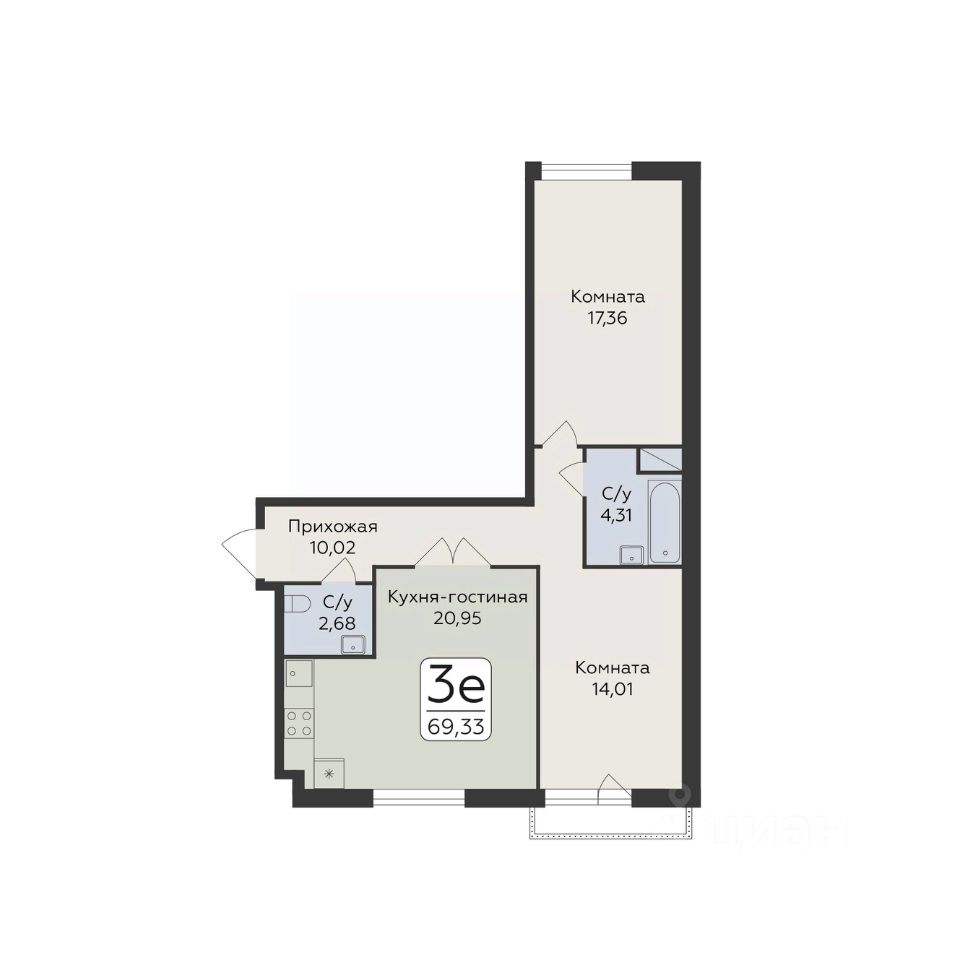 Продаётся 3-комнатная квартира в строящемся доме (Дом 1), срок сдачи: IV-кв. 2027, общей площадью 69.33 кв.м., на 2 этаже. Новый жилой комплекс от группы компаний "Развитие" расположен по адресу: г. Воронеж, по ул. пр-кт Труда.
