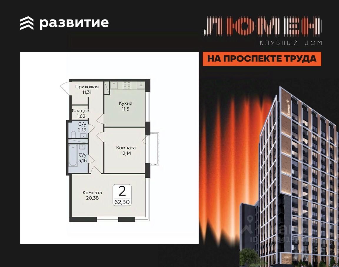 Продаётся 2-комнатная квартира в строящемся доме (Дом 1), срок сдачи: IV-кв. 2027, общей площадью 62.3 кв.м., на 3 этаже. Новый жилой комплекс от группы компаний "Развитие" расположен по адресу: г. Воронеж, по ул. пр-кт Труда.