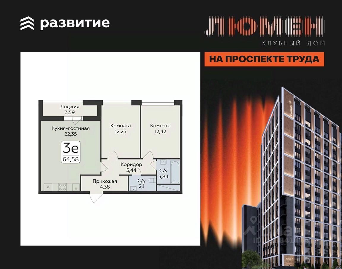 Продаётся 3-комнатная квартира в строящемся доме (Дом 1), срок сдачи: IV-кв. 2027, общей площадью 64.58 кв.м., на 5 этаже. Новый жилой комплекс от группы компаний "Развитие" расположен по адресу: г. Воронеж, по ул. пр-кт Труда.