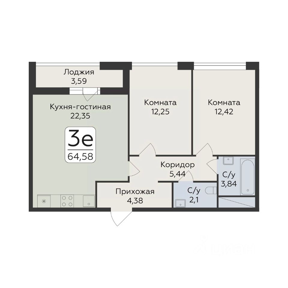 Продаётся 3-комнатная квартира в строящемся доме (Дом 1), срок сдачи: IV-кв. 2027, общей площадью 64.58 кв.м., на 6 этаже. Новый жилой комплекс от группы компаний "Развитие" расположен по адресу: г. Воронеж, по ул. пр-кт Труда.