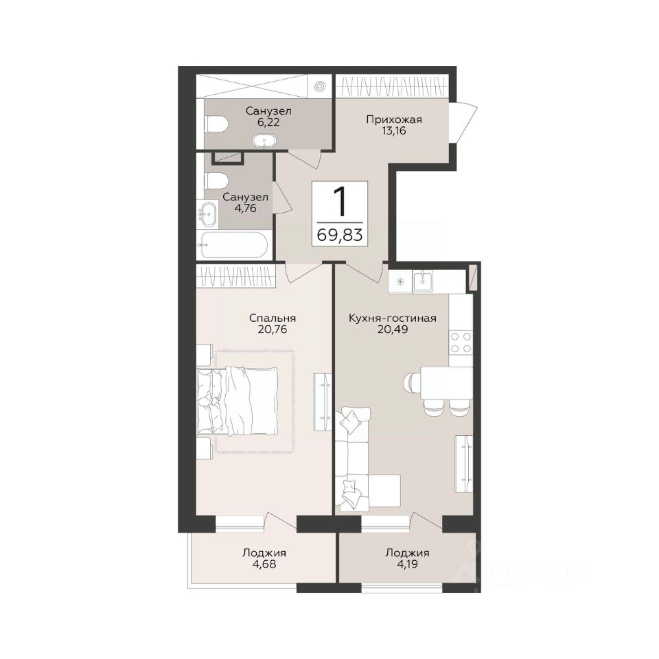 Продаётся 1-комнатная квартира в строящемся доме (Эклипс), срок сдачи: III-кв. 2030, общей площадью 69.83 кв.м., на 2 этаже. Новый жилой комплекс от группы компаний "Развитие" расположен по адресу: г. Воронеж, набережная Массалитинова.