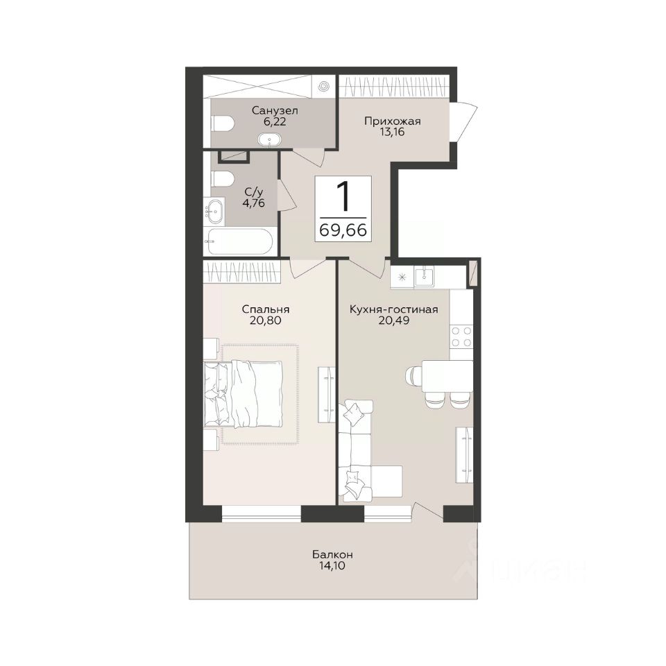 69,66 м²