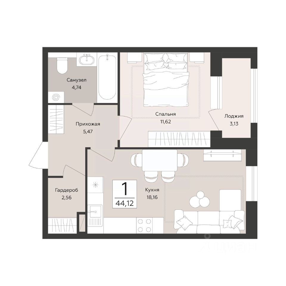 44,12 м²