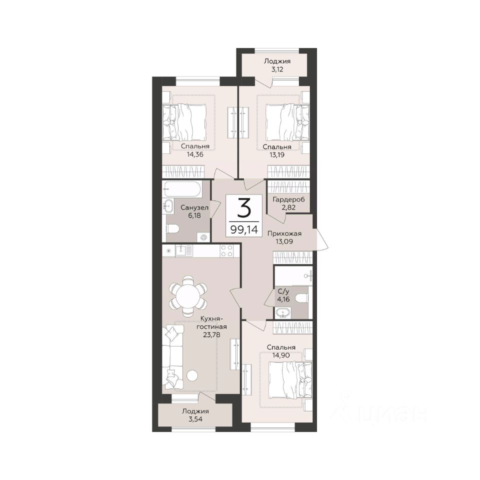 Продаётся 3-комнатная квартира в строящемся доме (Эклипс), срок сдачи: III-кв. 2030, общей площадью 99.14 кв.м., на 1 этаже. Новый жилой комплекс от группы компаний "Развитие" расположен по адресу: г. Воронеж, набережная Массалитинова.