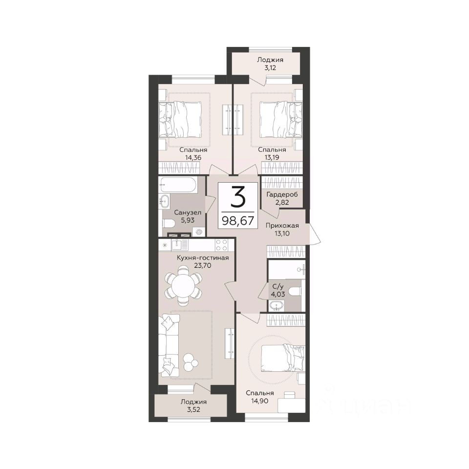 Продаётся 3-комнатная квартира в строящемся доме (Эклипс), срок сдачи: III-кв. 2030, общей площадью 98.67 кв.м., на 2 этаже. Новый жилой комплекс от группы компаний "Развитие" расположен по адресу: г. Воронеж, набережная Массалитинова.