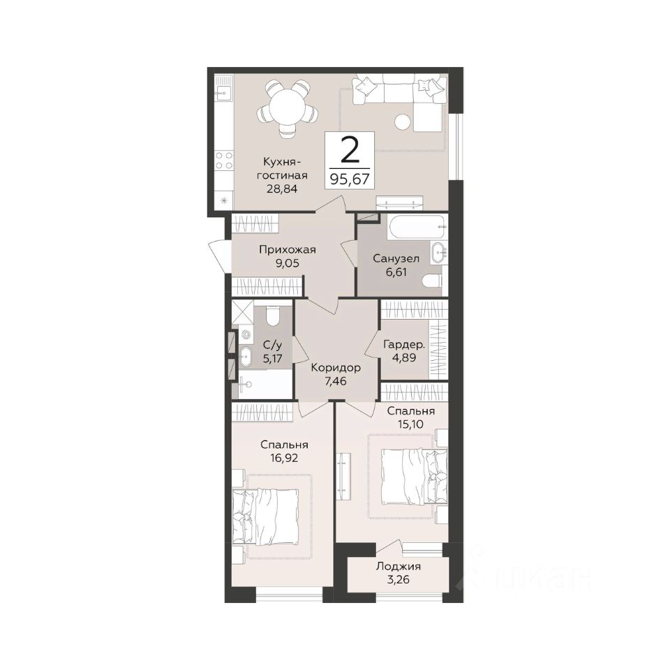 Продаётся 2-комнатная квартира в строящемся доме (Эклипс), срок сдачи: III-кв. 2030, общей площадью 95.67 кв.м., на 3 этаже. Новый жилой комплекс от группы компаний "Развитие" расположен по адресу: г. Воронеж, набережная Массалитинова.