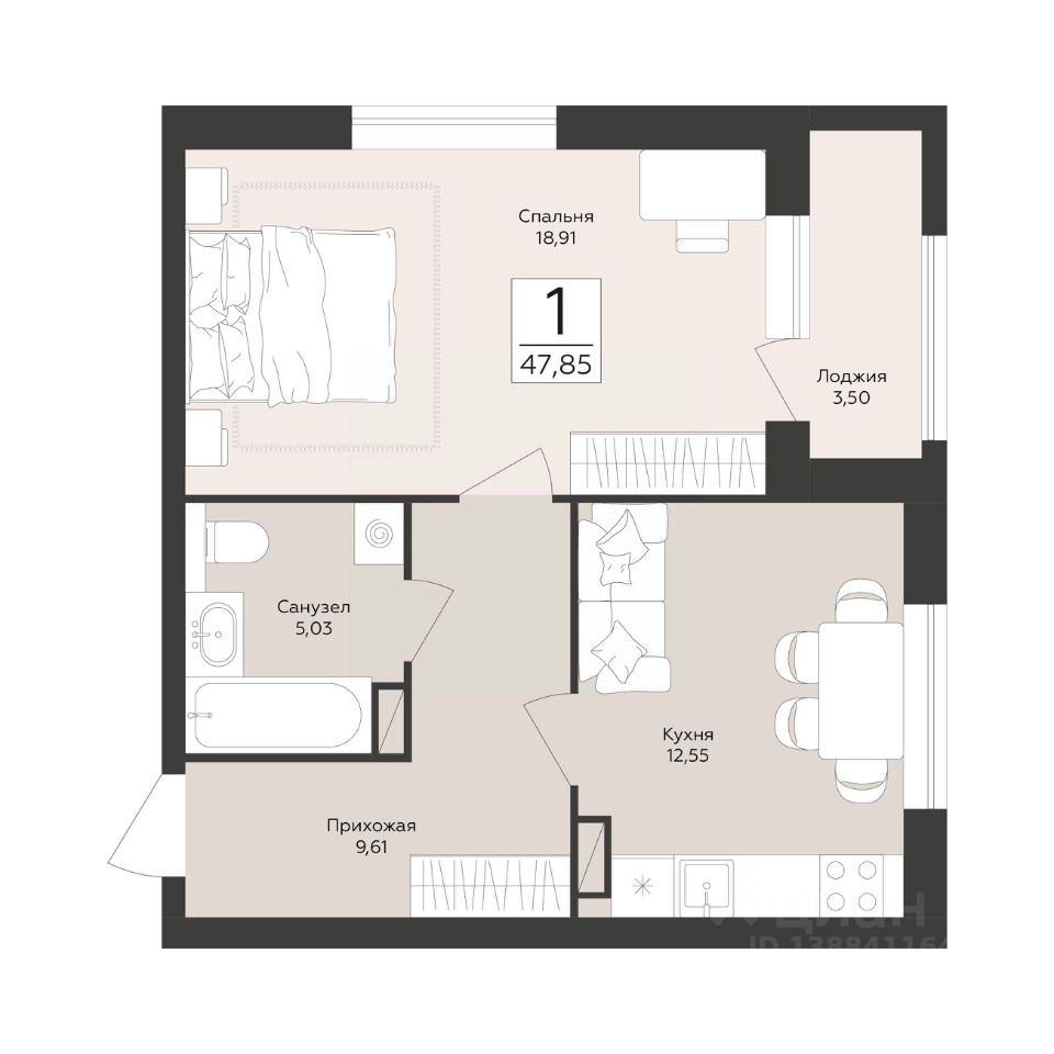 Продаётся 1-комнатная квартира в строящемся доме (Эклипс), срок сдачи: III-кв. 2030, общей площадью 47.85 кв.м., на 6 этаже. Новый жилой комплекс от группы компаний "Развитие" расположен по адресу: г. Воронеж, набережная Массалитинова.