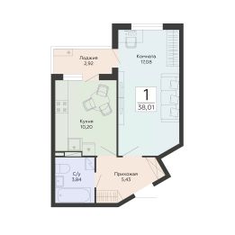 Продаётся 1-комнатная квартира в строящемся доме (1 этап), срок сдачи: IV-кв. 2029, общей площадью 38.01 кв.м., на 2 этаже. Новый жилой комплекс от группы компаний "Развитие" расположен по адресу: г. Воронеж, по ул. Туполева.