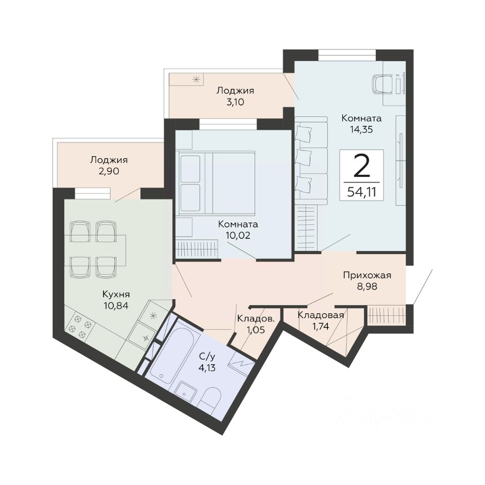 Продаётся 2-комнатная квартира в строящемся доме (1 этап), срок сдачи: IV-кв. 2029, общей площадью 54.11 кв.м., на 3 этаже. Новый жилой комплекс от группы компаний "Развитие" расположен по адресу: г. Воронеж, по ул. Туполева.