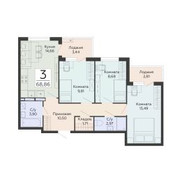 Продаётся 3-комнатная квартира в строящемся доме (1 этап), срок сдачи: IV-кв. 2029, общей площадью 68.86 кв.м., на 6 этаже. Новый жилой комплекс от группы компаний "Развитие" расположен по адресу: г. Воронеж, по ул. Туполева.