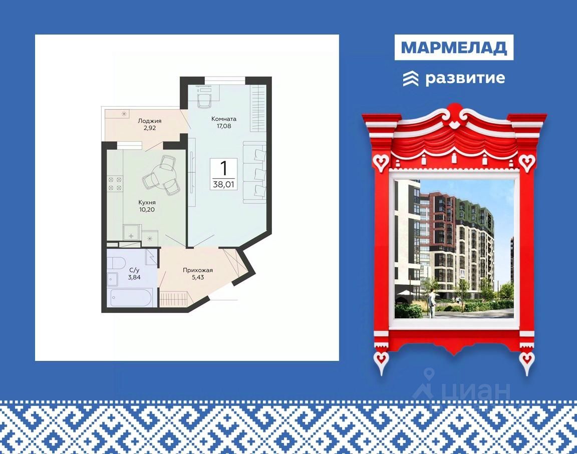Продаётся 1-комнатная квартира в строящемся доме (1 этап), срок сдачи: IV-кв. 2029, общей площадью 38.01 кв.м., на 9 этаже. Новый жилой комплекс от группы компаний "Развитие" расположен по адресу: г. Воронеж, по ул. Туполева.
