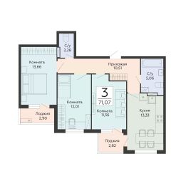 Продаётся 3-комнатная квартира в строящемся доме (1 этап), срок сдачи: IV-кв. 2029, общей площадью 71.07 кв.м., на 9 этаже. Новый жилой комплекс от группы компаний "Развитие" расположен по адресу: г. Воронеж, по ул. Туполева.