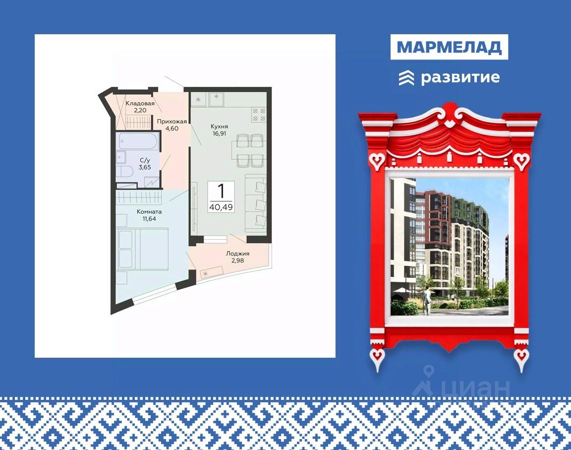 Продаётся 1-комнатная квартира в строящемся доме (1 этап), срок сдачи: IV-кв. 2029, общей площадью 40.49 кв.м., на 6 этаже. Новый жилой комплекс от группы компаний "Развитие" расположен по адресу: г. Воронеж, по ул. Туполева.