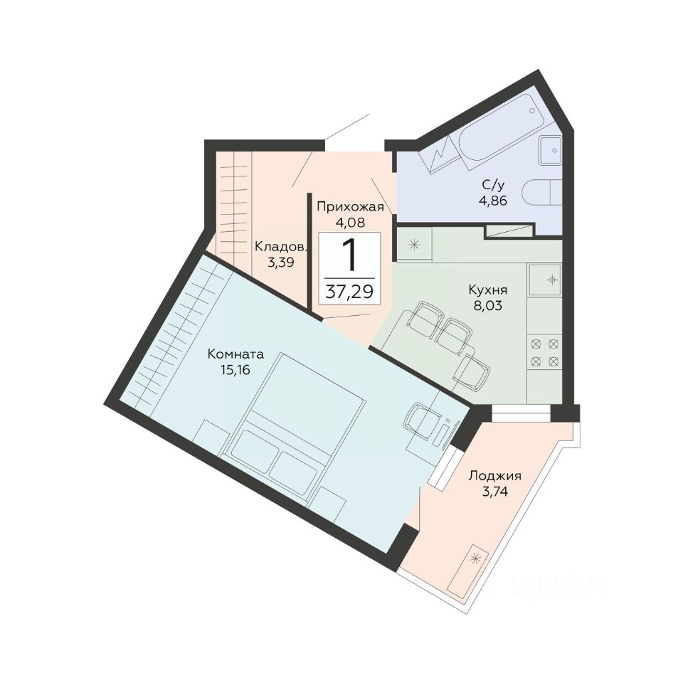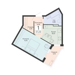 Продаётся 1-комнатная квартира в строящемся доме (1 этап), срок сдачи: IV-кв. 2029, общей площадью 37.29 кв.м., на 6 этаже. Новый жилой комплекс от группы компаний "Развитие" расположен по адресу: г. Воронеж, по ул. Туполева.