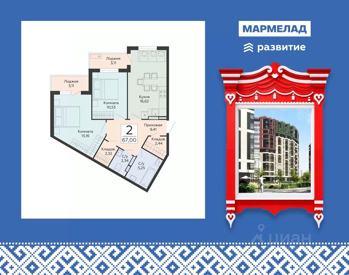 Продаётся 2-комнатная квартира в строящемся доме (1 этап), срок сдачи: IV-кв. 2029, общей площадью 67 кв.м., на 6 этаже. Новый жилой комплекс от группы компаний "Развитие" расположен по адресу: г. Воронеж, по ул. Туполева.