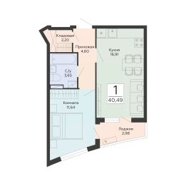 Продаётся 1-комнатная квартира в строящемся доме (1 этап), срок сдачи: IV-кв. 2029, общей площадью 40.49 кв.м., на 8 этаже. Новый жилой комплекс от группы компаний "Развитие" расположен по адресу: г. Воронеж, по ул. Туполева.