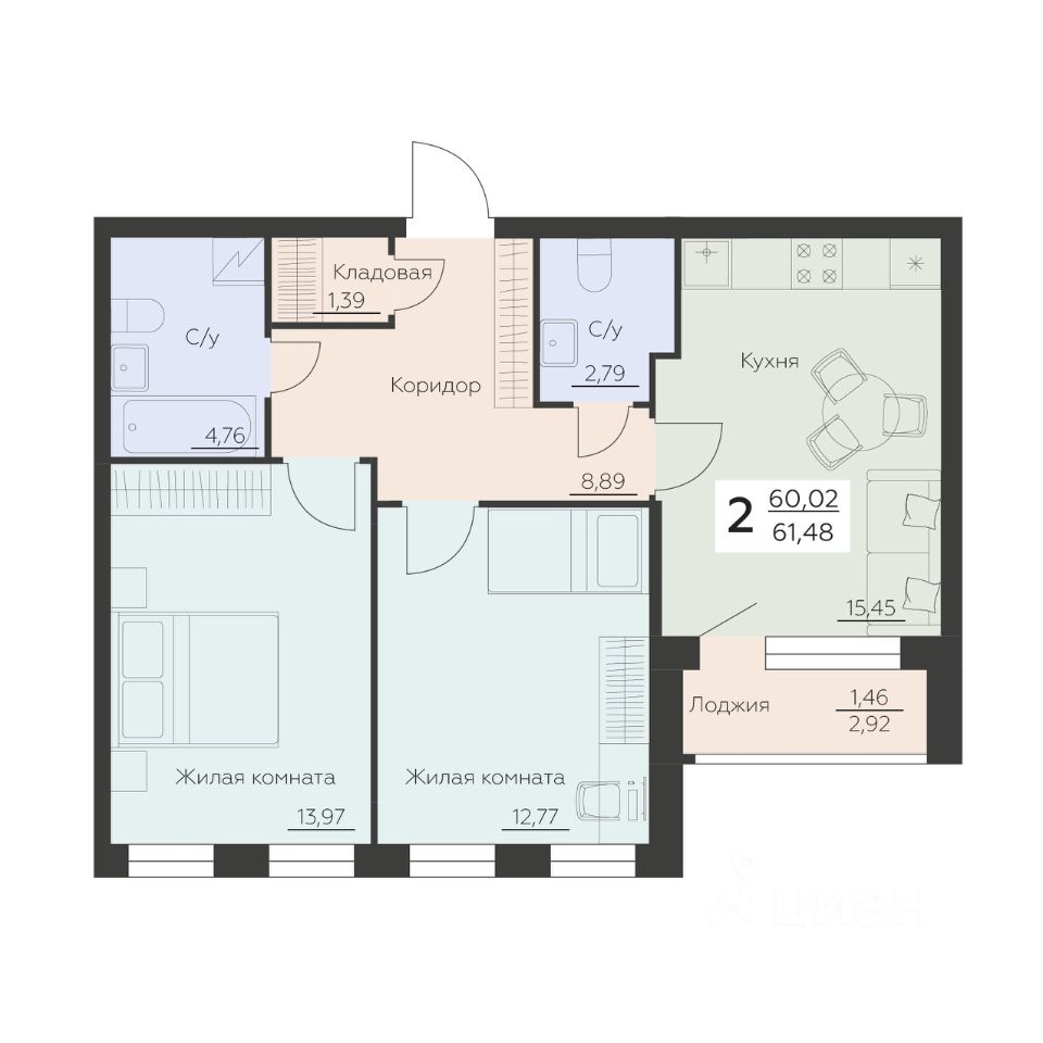 Общая площадь61,48 м²