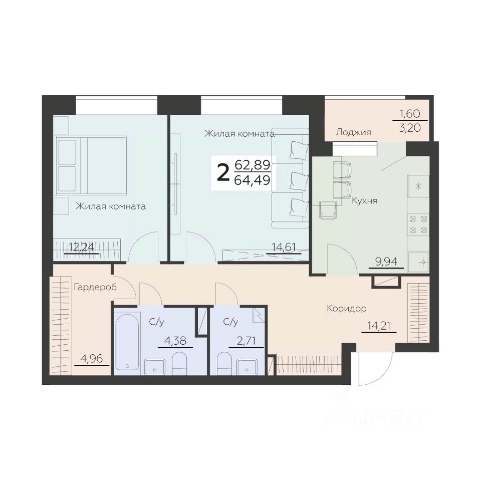 Общая площадь64,49 м²