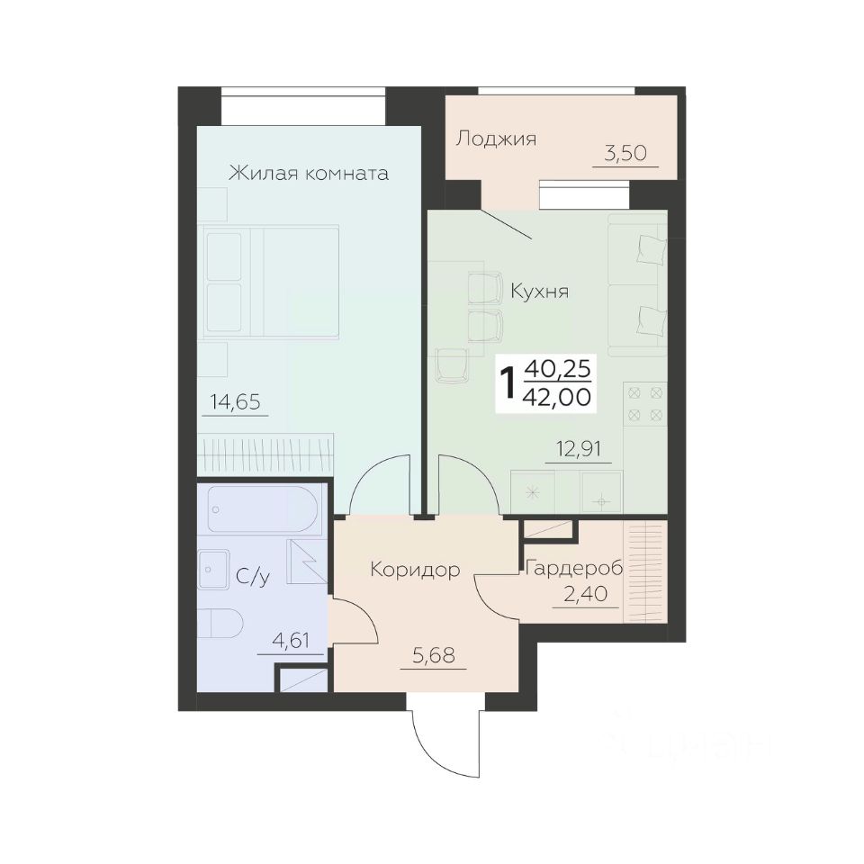 Общая площадь42 м²
