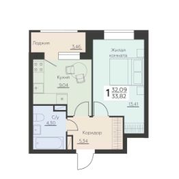 Общая площадь33,82 м²