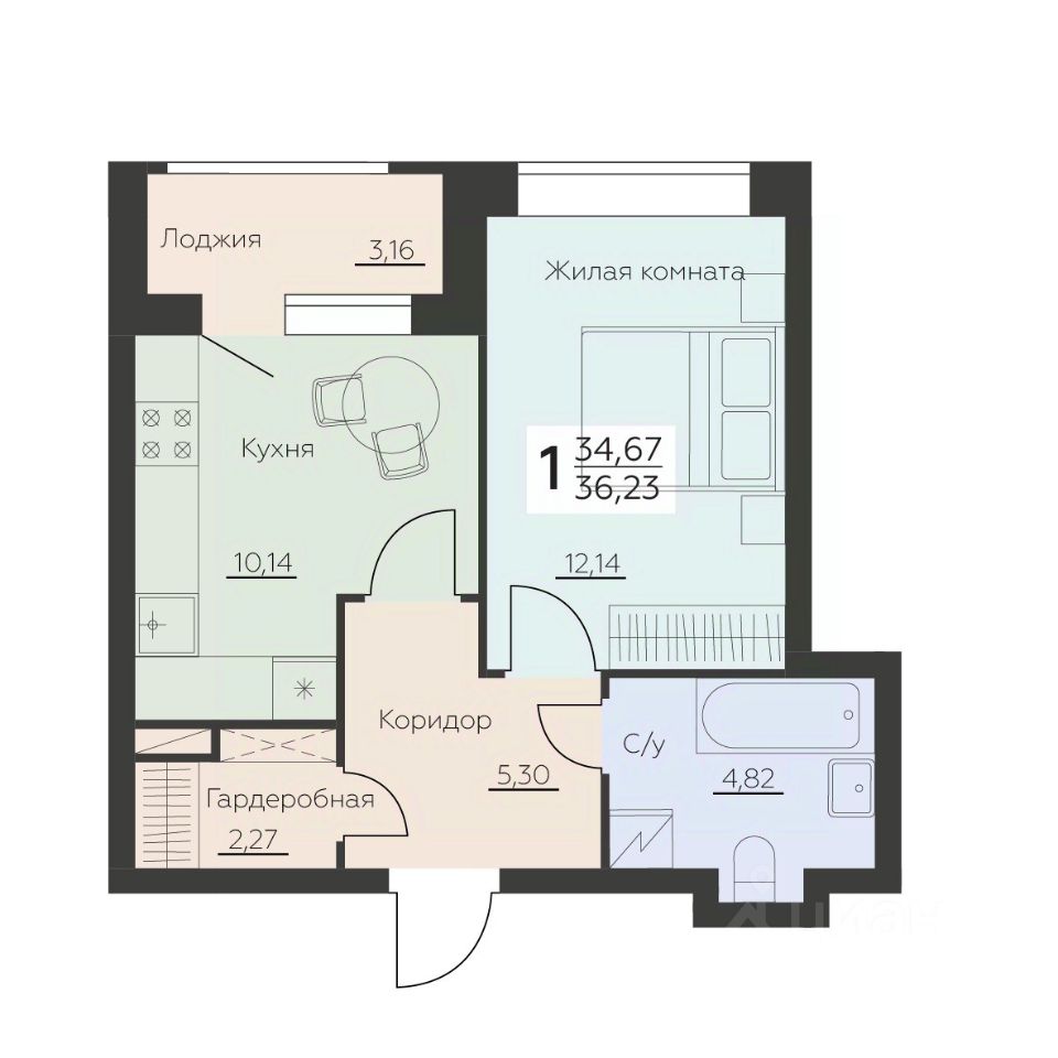 Общая площадь36,23 м²