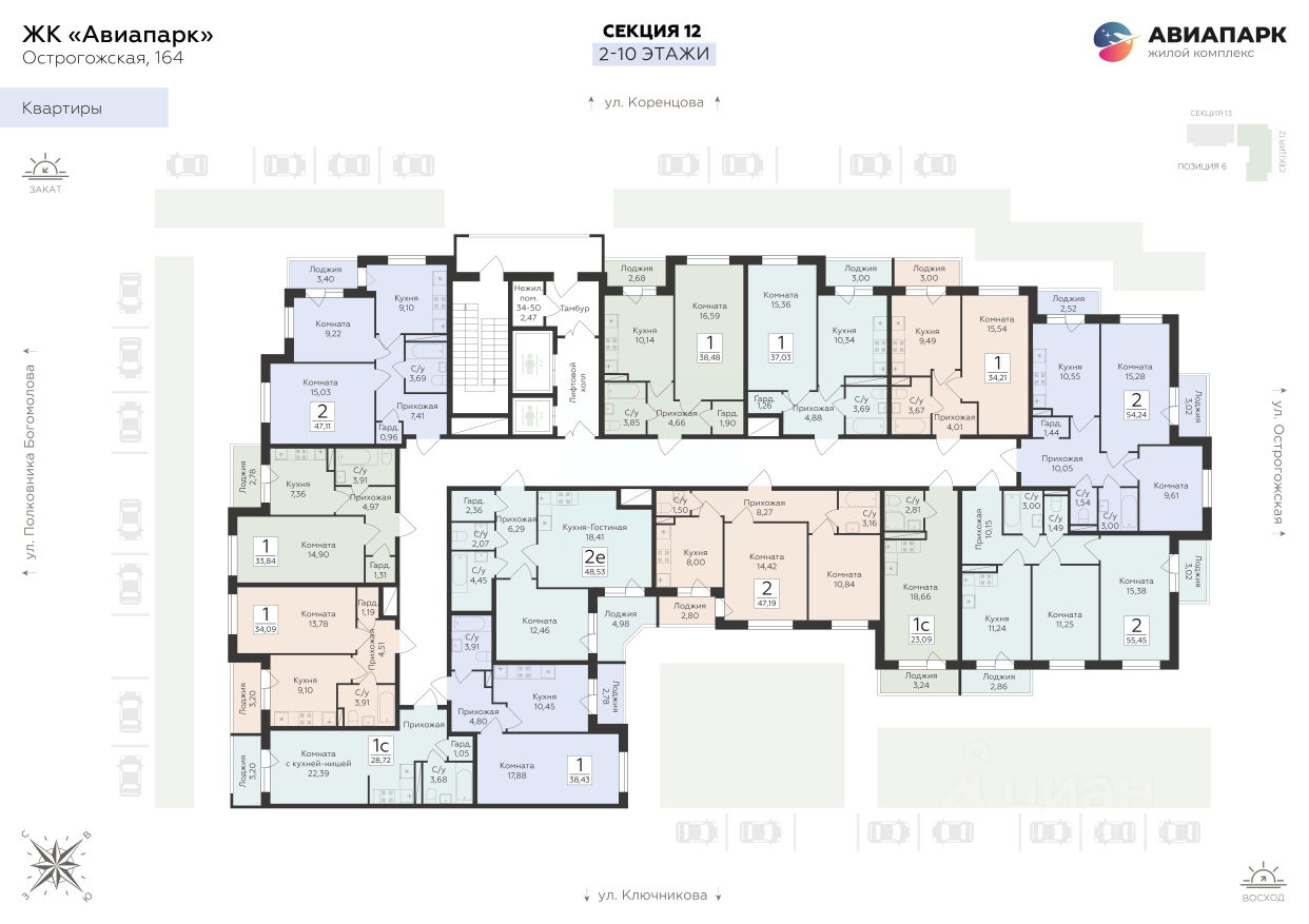 Жилой Комплекс "АВИАПАРК" расположен в микрорайоне Шилово города Воронежа, который является самой экологичной локацией города. ЖК строится по монолитно-кирпичной технологии. Места общего пользования, холлы и коридоры выполнены по дизайнерскому проекту. В квартирах выполняется качественная отделка, лучевая разводка системы отопления. Неоспоримое преимущество проекта — возможность приобрести и чистовую отделку. Первый этаж займет магазин Пятерочка. Благоустройство прилегающей территории включает в себя: организацию зон отдыха, детских игровых и спортивных площадок, просторный паркинг на территории ЖК, а также комплексное озеленение. В непосредственной близости расположены образовательные учреждение и магазины.