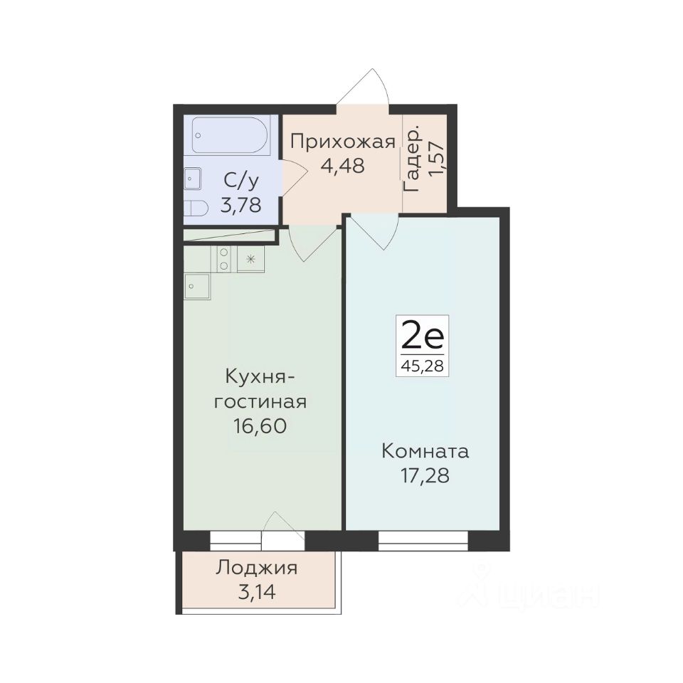 Общая площадь45,28 м²