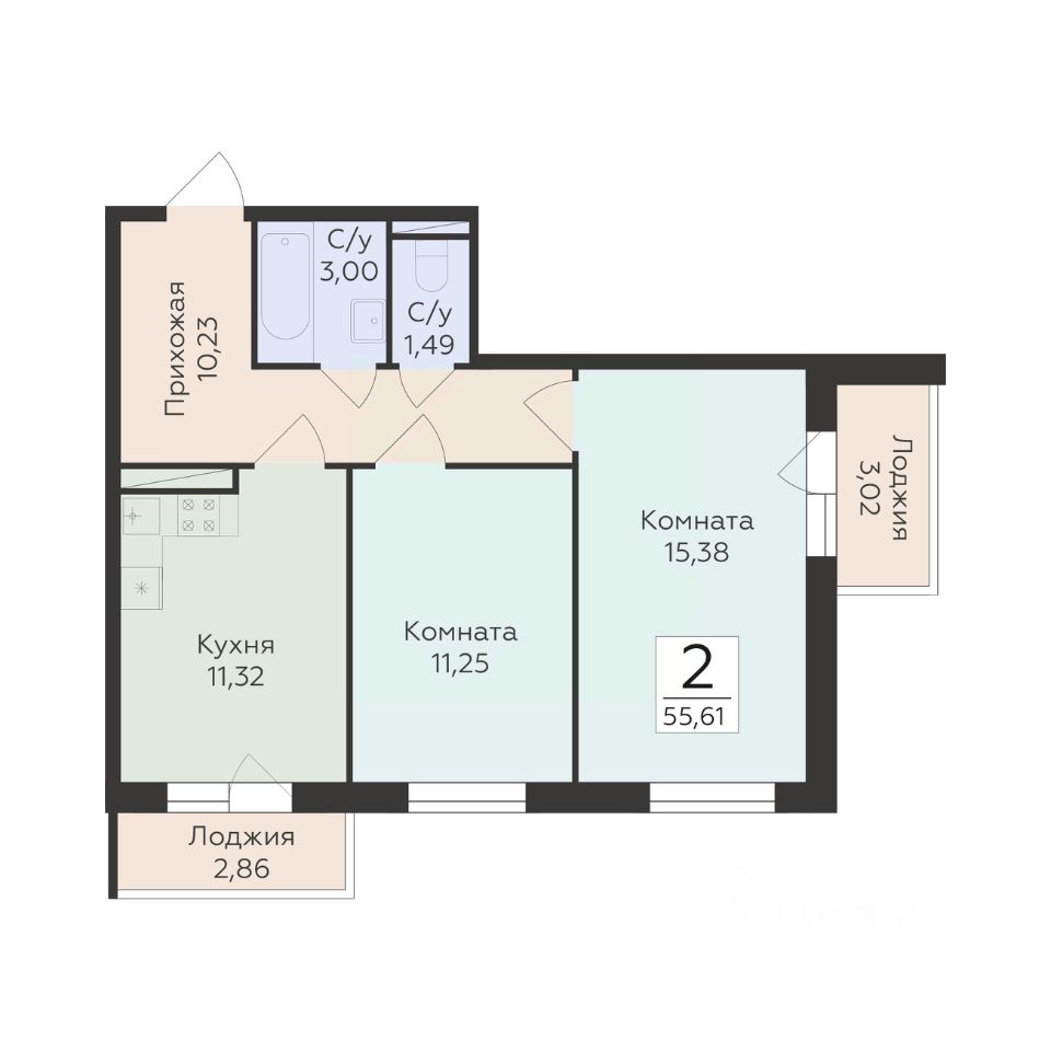 Общая площадь55,61 м²