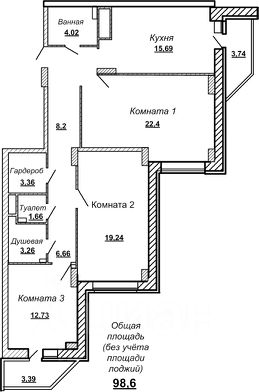 98,6 м²