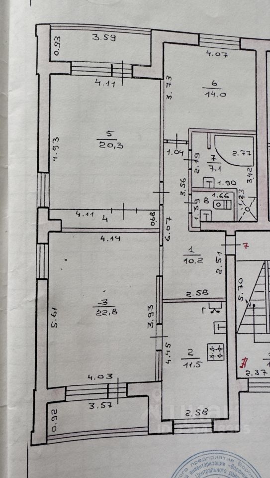 В квартире две спальни 20,3+14,0 м2; гостиная 22,8 м2;