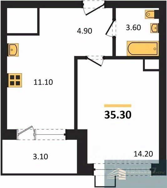 Общая площадь35,3 м²