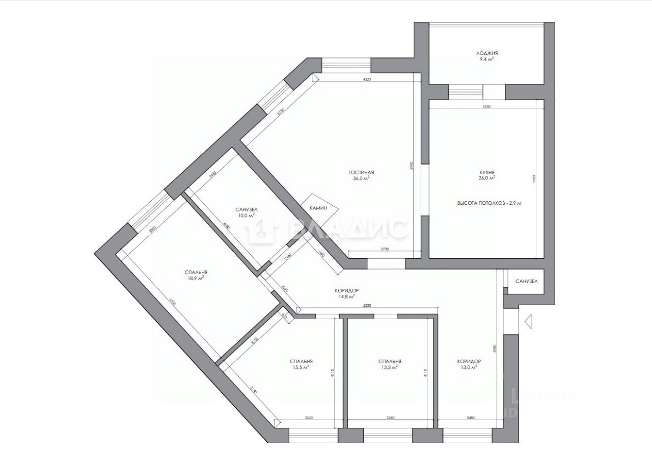 - Большая площадь квартиры — 158 м², с просторными комнатами и высокими потолками (в гостиной до 5,5 м).
