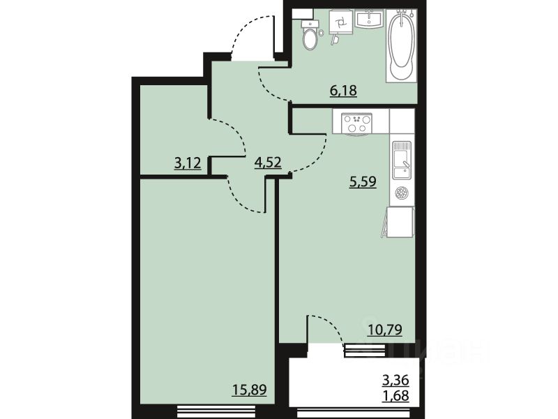 Жилая площадь15,9 м²