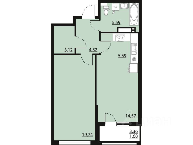 Жилая площадь19,7 м²