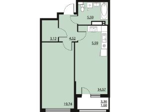 Продается 1-комн. квартира, 54,81 м²