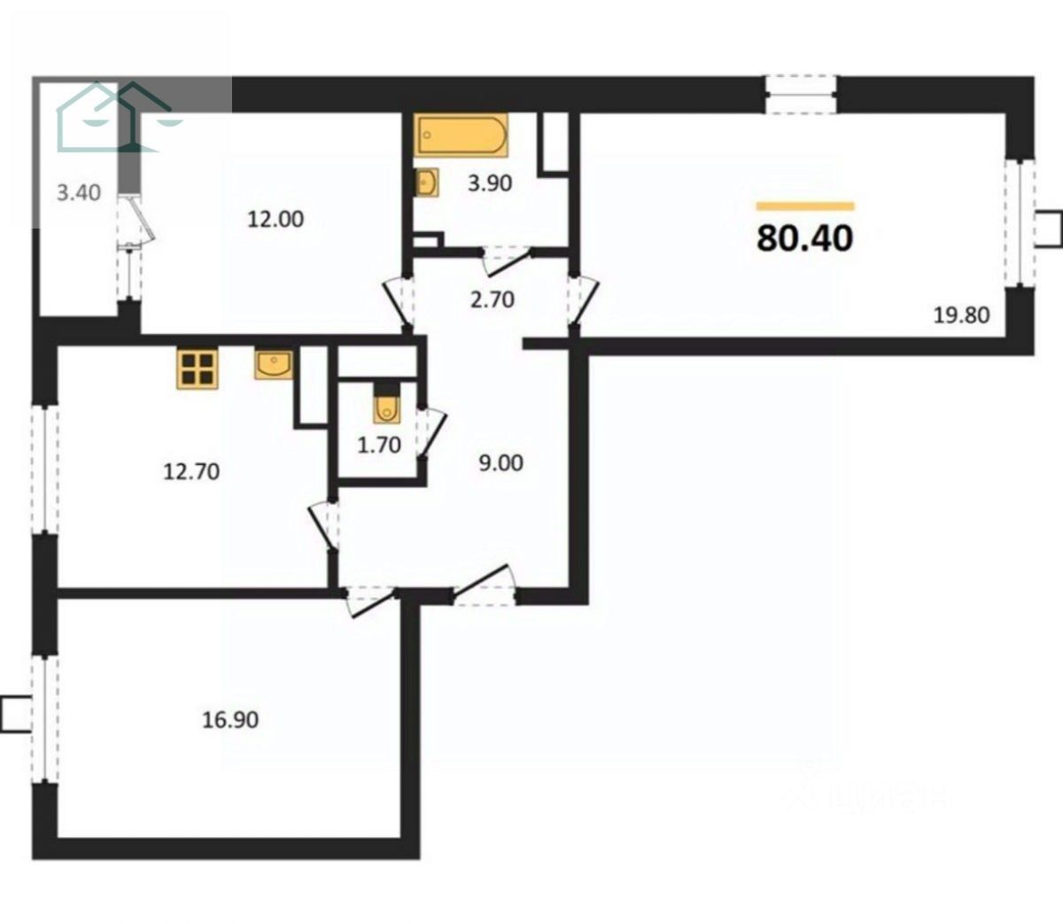 - Спальные комнаты 12 м2, 17 м2 и 20 м2;