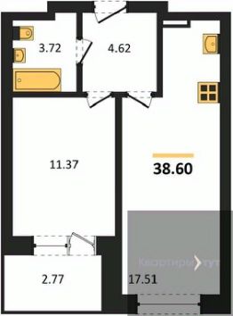 Квартира: 1 к 38,60 кв.м., 5 этаж в комплексе Дом у Ротонды, 1 очередь, корп.1, сдача: 4кв. , этажей: 28, адрес Воронеж г., Транспортная ул., д. 58, Застройщик: ГК ПЕРВОГРАД.