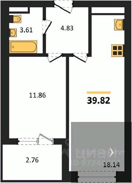 Квартира: 1 к 39,82 кв.м., 6 этаж в комплексе Дом у Ротонды, 1 очередь, корп.1, сдача: 4кв. , этажей: 28, адрес Воронеж г., Транспортная ул., д. 58, Застройщик: ГК ПЕРВОГРАД.