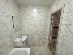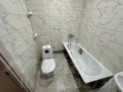 Санузел полностью готов: современная плитка и новая сантехника.