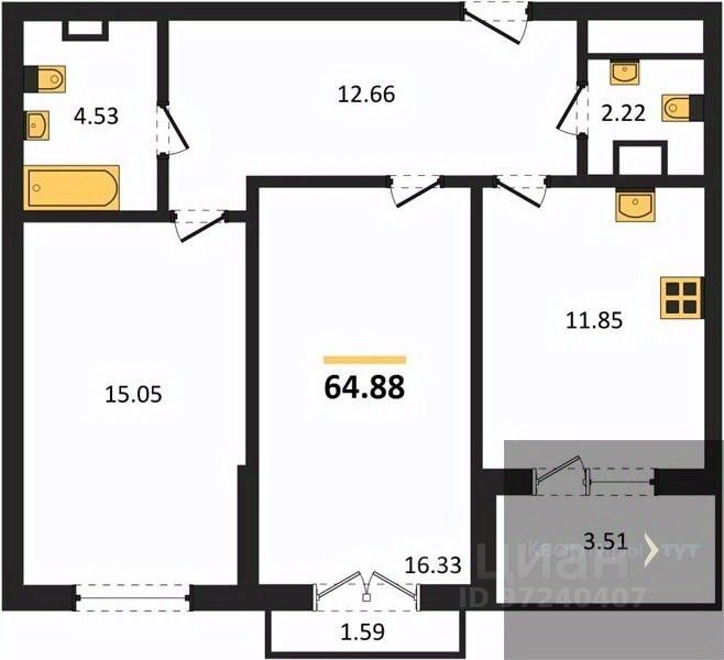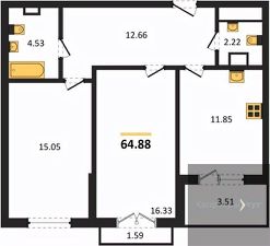 Квартира: 2 к 64,88 кв.м., 5 этаж в комплексе Городские сады, 2 очередь, корп.1, сдача: 2кв. , этажей: 18, адрес Воронеж г., Ломоносова ул., , Застройщик: ВДК.